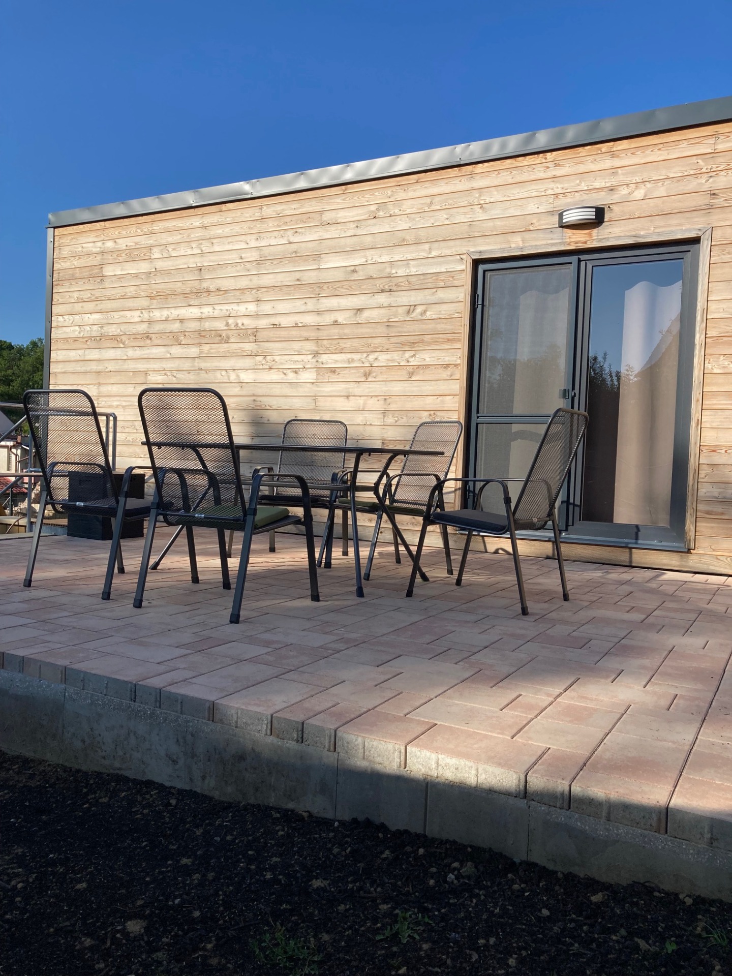 K dispozici je terasa s příjemným posezením a grilem, druhá terasa pak s bazénem (v letní sezóně). Děti se můžou zabavit na dětském hřišti a pískovišti, které jsou součástí oploceného pozemku. Pro úschovu kol či lyží je k dispozici uzamykatelný zahradní domek.